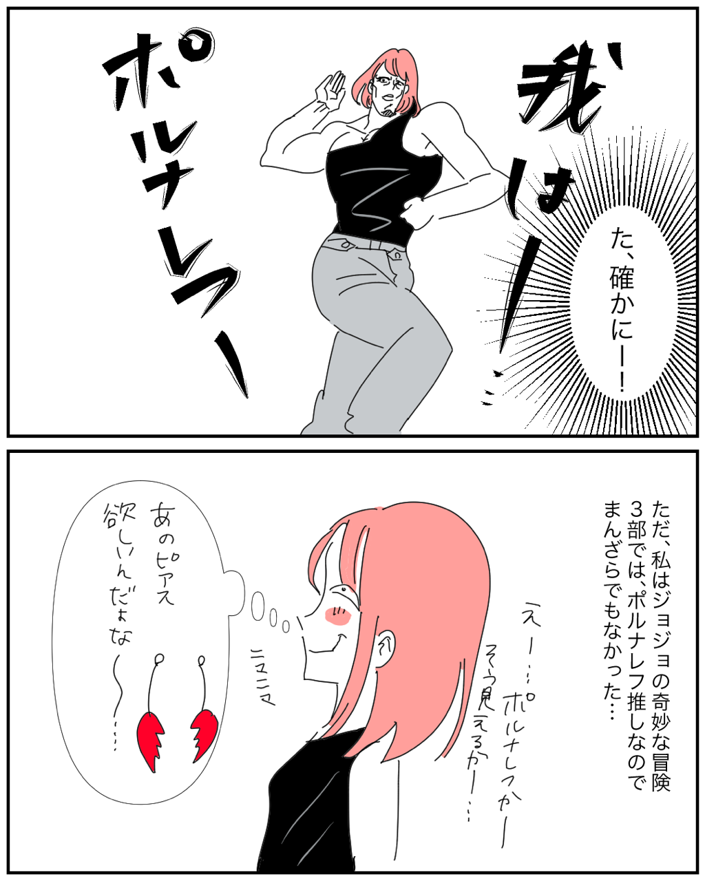 オシャレだと思った服装がまさかの〇〇だった! 2021年09月29日 「笑い話」カテゴリの最新記事 タグ :#コミックエッセイ#イラスト#イラストエッセイ#漫画#婚活マンガ#恋愛漫画#恋愛#ジョジョの奇妙な冒険#ジョジョ#ポルナレフ < 前の記事次の記事 > コメント コメント一覧 (2) 1. 七紙 2022年08月02日 09:48 可愛らしい服だと思いましたが、まさかのオチに笑いました。この後ジョジョ話に花が咲いたのでしょうか? 0 makarina がしました 2. 匿名 2022年08月11日 10:58 私もあの服ポルポルだと思ってましたwww ちなみに、花京院推しです(ズアッ) 0 makarina がしました コメントフォーム 名前 コメント 記事の評価 リセット リセット 顔 星 情報を記憶 コメントを投稿する