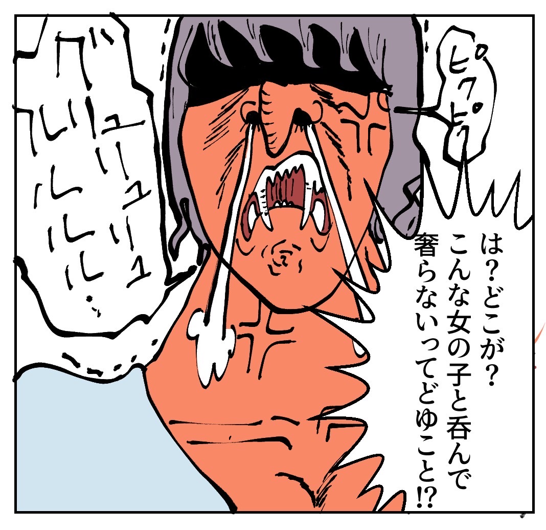 お金と男に強欲な女【11】 2022年10月02日 🟠1つ前の話はこちらから🟠↓↓↓つづきは下に↓↓↓🌈続きはこちらから🌈↓↓↓ 🔵初めから読む場合はこちらから🔵↓↓↓🟣元祖すご子ちゃんお話はこちらから🟣↓↓↓🟢他のすご子ちゃんはこちらから🟢↓↓↓⭕️こちらの登録もぜひー!⭕️最近、更新時間がバラバラなこともあるか登録してると、お知らせがLINEに届いて便利✨※この話は実話を元にしたフィクションです。 「お金と男に強欲な女」カテゴリの最新記事 タグ :#強欲#迷惑な人#メンヘラ#すご子ちゃん#イラストエッセイ#イラストレーター#コミックエッセイ#自己中女#婚活マンガ#まかりな < 前の記事次の記事 > コメント コメント一覧 (11) 1. 姉御〜 2022年10月02日 18:55 もぅ一緒に行っちゃだめだよ〜 すご子レベルになっちゃうよ😰 (一緒にいたら傍から見たら同類) 0 makarina がしました 2. 姉御 2022年10月02日 19:03 姉御 逃げて〜 直ぐに❗️逃げて〜💨 0 makarina がしました 3. 確かに 2022年10月02日 19:35 お前レベルの女はなかなかいない… スーパーサイヤ人みたいになってるし 0 makarina がしました 4. ちょっとっ 2022年10月02日 20:00 女の子というか人ですらなくなってるよー‼️ すご子ちゃーん人間に戻って‼️ 0 makarina がしました 5. すごっ 2022年10月02日 20:05 グリュリュリュルルル? 巨大化しちゃってるし 今度は何するつもり?! 0 makarina がしました 6. みかん 2022年10月02日 20:11 姐御…よく切れないな… 0 makarina がしました 7. 空気 2022年10月02日 20:46 北斗の拳みたい 0 makarina がしました 8. tm 2022年10月02日 21:28 確かにすご子レベルの人と飲む様な人種ではありませんね…。 60000円も請求されてるのに2000円だけで済ませてくれる優しい人達ですからね…。 0 makarina がしました 9. 😂 2022年10月03日 01:52 姉御ー!逃げろー!怖すぎる笑 どんな環境で育ったらこんな勘違いできるのw 0 makarina がしました 10. こわ 2022年10月03日 06:42 赤鬼?唸り声が怖いよー もはや人ではない… ろくに話もせずに飲み食いしまくってたんだろうな 0 makarina がしました 11. みる 2022年10月03日 12:51 あらら 妖怪になってしまった! 0 makarina がしました コメントフォーム 名前 コメント 記事の評価 リセット リセット 顔 星 情報を記憶 コメントを投稿する