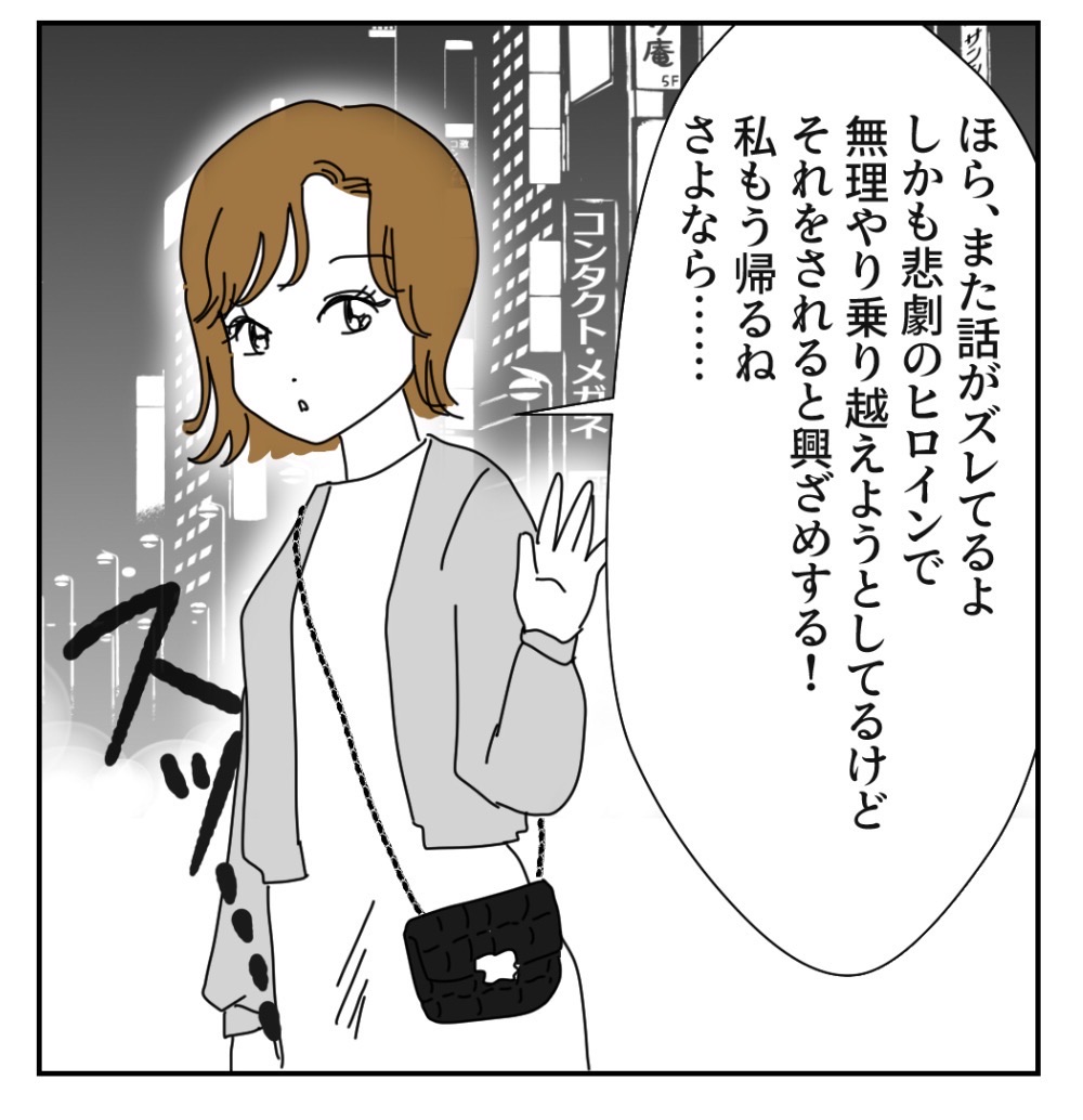 マルっと丸投げ「丸 投げ子」参上!!【18】 2023年02月22日 🔵1つ前話はこちらから🔵↓↓↓ つづくよー※この話は実話を元にしたフィクションです。🔵初めから読む場合はこちらから🔵↓↓↓🟣元祖すご子ちゃんお話はこちらから🟣↓↓↓🟢他のすご子ちゃんはこちらから🟢↓↓↓⭕️こちらの登録もぜひー!⭕️最近、更新時間がバラバラなこともあるか登録してると、お知らせがLINEに届いて便利✨※この話は実話を元にしたフィクションです。 「丸っと丸投げ」カテゴリの最新記事 タグ :#丸投げ子#勘違すご子#丸投げ女#コミックエッセイ#ギャグ漫画#イラストエッセイ#イラストレーター#まかりな#漫画が読める#漫画 < 前の記事次の記事 > コメント コメント一覧 (11) 1. 私は受け子 2023年02月22日 19:07 この友達。初対面でここまで言えるの強すぎるでしょ。笑 0 makarina がしました 2. 匿名 2023年02月22日 19:17 この期に及んで、なんかない?!じゃないからw 0 makarina がしました 3. 投げ子ちゃん 2023年02月22日 19:29 いつか自分の振る舞いに反省する時が来ると良いね。知らんけど😒 0 makarina がしました 4. basil 2023年02月22日 19:32 もう二度と合わないであろう人物にならバンバン言いたいこと言えるって感じかな 「なんかない?」ってまた丸投げしてくる投げ子… 学習能力ナッシングw これも「あなたの意見を尊重」して「決めさせてあげてる」ってこと!? 主人公はどうするかな 0 makarina がしました 5. 投げ子ちゃん 2023年02月22日 19:55 怒ったり😡青くなったり😨してたけど ズバッとちゃんの言ったことは聞き流してるね🫥 まぁこんだけ言われても 右から左へ〜なので どうにもならないと思うけど 主人公?の女の子は、ズバッとちゃん派だよ 「なんかない?」って言われても 「なんにもない😑」って言いたくなるよね 0 makarina がしました 6. 優しい子だなー 2023年02月22日 20:01 初対面で2度と会わないような子に あんな向き合って言ってあげれない。 優しさに気づかない『まるなげこちゃん』損して生きてる 0 makarina がしました 7. なげこ 2023年02月22日 21:39 初見の友達も、ガツンと言って。 その友達をバカにするような言動をする、なげこ。 なげこの学生時代からの友達は、もう、あきれ果てていますね。 友人関係は終わりですね。 百害あって一利なし、こんななげことは 縁を切ろうと考えているだろうね。 何が、スカッとすること無いの?だよ。 あんたが(なげこ自身が)居なくなることが 最大のスカッとすることだよ。 こんな人がいるんだね、世の中には。 驚きです。 0 makarina がしました 8. みる 2023年02月22日 21:49 無理です この人 0 makarina がしました 9. ぽん 2023年02月23日 08:19 これ実話!?こんな人いるのー? 会ってみたい! 性格悪すぎる!!笑 0 makarina がしました 10. 名無し 2023年02月23日 19:58 投稿いつも楽しく読ませて頂いています✨ どうしても気になったので失礼します…… 多分攻めるじゃなくて責めるだと思います…… これからも応援しています!! 0 makarina がしました 11. ひまわり 2023年02月25日 13:16 なんもない。バイバイ。二度と連絡してこないで。 0 makarina がしました コメントフォーム 名前 コメント 記事の評価 リセット リセット 顔 星 情報を記憶 コメントを投稿する