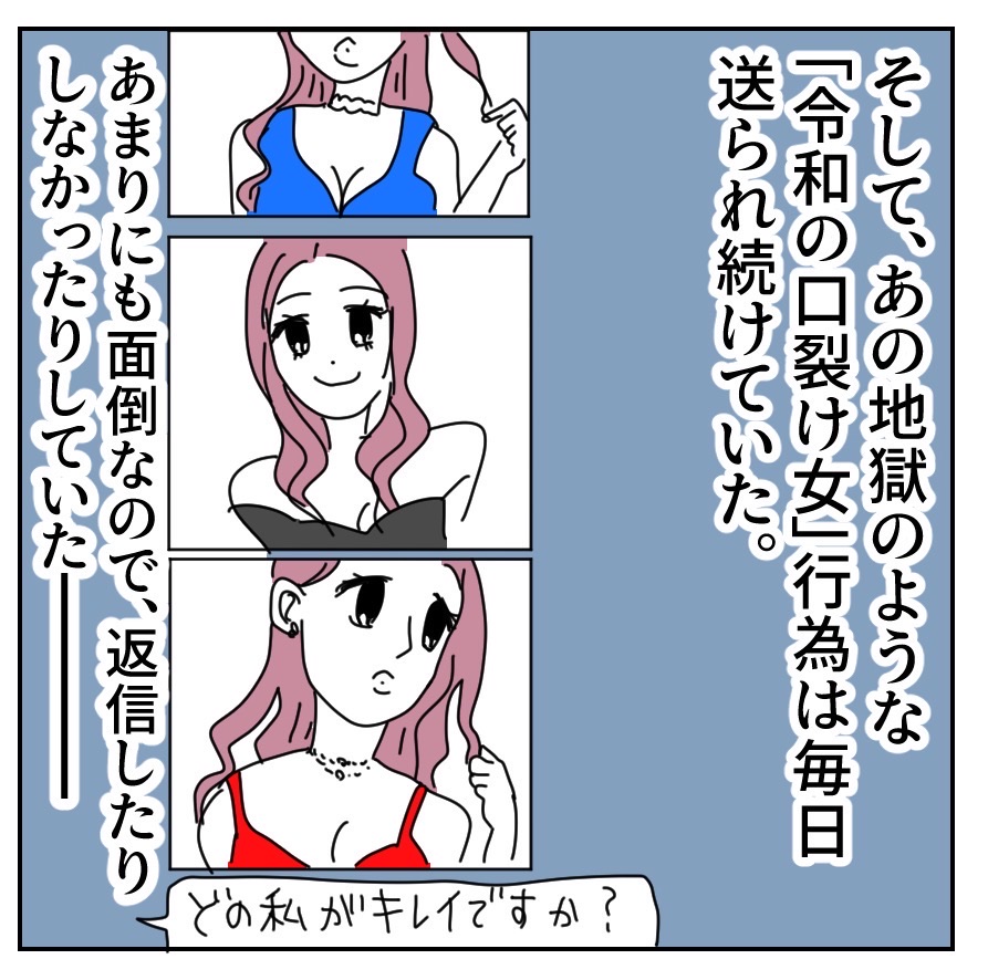「私…綺麗?」な女さん【8】 2023年04月12日 🔵1つ前の話はこちらから🔵↓↓↓ つづきは下に↓↓↓※この話は実話を元にしたフィクションです。🌈続きはこちらから🌈 🟣初めから読む場合はこちらから🟣こちらの登録もお願いします🙇♂️💝 「私綺麗?な女さん」カテゴリの最新記事 タグ :#イラストエッセイ#イラストレーター#コミックエッセイ#まかりな#キャバ嬢#令和の口裂け女#SNS#依存#漫画が読める#ギャグ漫画 < 前の記事次の記事 > コメント コメント一覧 (4) 1. んーーー🫢 2023年04月12日 19:30 注目されたい? 私を見て見て‼️って感じ❓ かまってちゃん❓ 0 makarina がしました 2. 😳 2023年04月12日 19:38 もうわざわざ送って来るんだから、拡散したろか😛 恥ずい人やね。 0 makarina がしました 3. そんなやつ 2023年04月12日 19:42 ほっときゃいいのに。 相手にするから 送られてくるんだろ。 ここにでてくる子は ほんま、優しいよな。 なのに、私もズルズルみてしまう。 アカンなぁ。 せやけど、人の振り見て我が振り直せで 勉強させてもろてます🎵 0 makarina がしました 4. basil 2023年04月12日 20:18 注意したらしたで、またそこだけ切り取られて悪者にされてしまいそう… リアクションしちゃうと増長するだけだから放置で! 0 makarina がしました コメントフォーム 名前 コメント 記事の評価 リセット リセット 顔 星 情報を記憶 コメントを投稿する