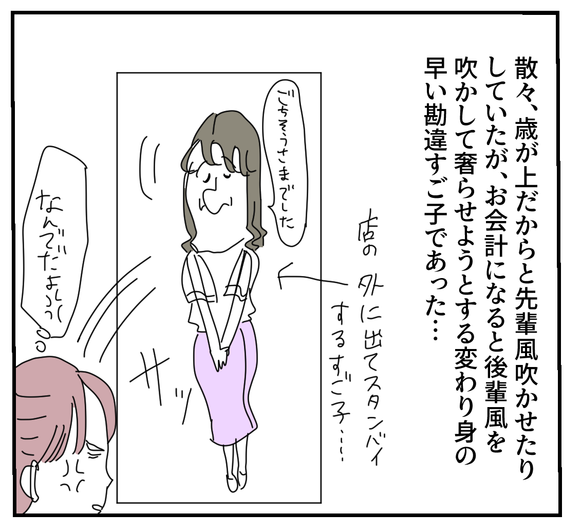 会社でも、自分が主役にならないと気が済まない女子【17】 2023年07月11日 🔵1つ前の話はコチラ🔵 つづきは下に↓↓↓※この話は実話を元にしたフィクションです。🌈続きはコチラ🌈 🟢最初から読む🟢🟣勘違すご子シリーズ🟣↓↓↓⭕️こちらの登録もぜひー!⭕️最近、更新時間がバラバラなこともあるか登録してると、お知らせがLINEに届いて便利✨ 「会社でも、自分が主役にならないと気が済まない女子に出会った話」カテゴリの最新記事 タグ :#イラストレーター#漫画#漫画が読める#コミックエッセイ#マンガブログ#マンガ#エッセイマンガ#エッセイ漫画#エッセイギャグ漫画#勘違すご子 < 前の記事次の記事 > コメント コメント一覧 (2) 1. ずうずうしい 2023年07月12日 18:32 年上の後輩は扱いにくいのぅ💦 0 makarina がしました 2. え 2023年07月31日 12:31 こんなん、「何言ってるんですかー」て笑いながら自分の分しか払わん! 外に出ようとしてたら腕掴んで引き戻すわ 0 makarina がしました コメントフォーム 名前 コメント 記事の評価 リセット リセット 顔 星 情報を記憶 コメントを投稿する