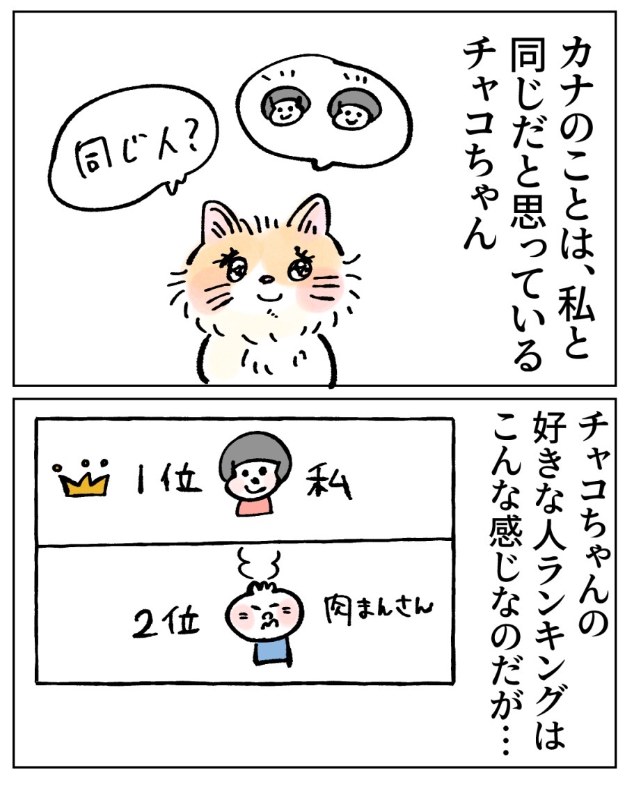 好きな人ランキング 2023年08月28日 🔵1つ前の話はコチラ🔵 オマケ。日中は大体ここにいる。じとり…次の話は下に↓↓↓🌈次の話はコチラ🌈🐱初めから読む🐱↓猫漫画の 一覧はこちらから↓こちらの登録もお願いします🥹猫漫画の更新は、月~金曜日12時~13時更新を目指してますが、時間が前後してしまうので💦登録すると更新のお知らせが届いて便利✨ 「猫のチャコちゃん」カテゴリの最新記事 タグ :#漫画#まかりな#コミックエッセイ#面白い話#漫画が読める#猫漫画#猫イラスト#猫かわいい#猫マンガ#猫漫画エッセイ < 前の記事次の記事 > コメント コメント一覧 (1) 1. 通りすがり 2023年08月28日 14:34 いつも楽しく拝見しています! 肉まんさんが最下位なのって、男性だからではないでしょうか? どういうわけか、ワン&ニャンは、若い女の人が大好きなイメージあります。(ウチのワンだけかな?) 大丈夫、チャコちゃんは心の中ではちゃんと肉まんさんのことが好きなはず! 0 makarina がしました コメントフォーム 名前 コメント 記事の評価 リセット リセット 顔 星 情報を記憶 コメントを投稿する