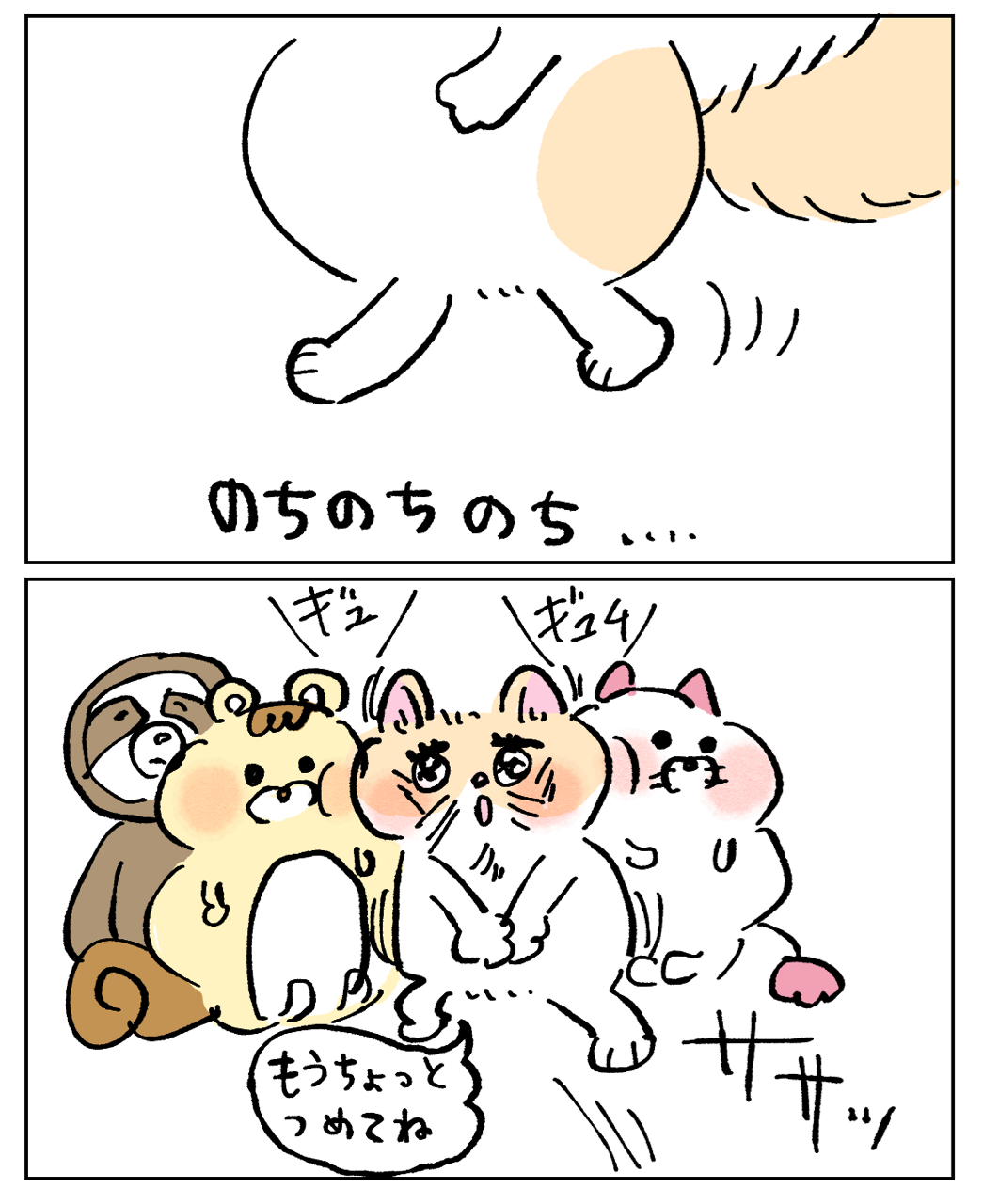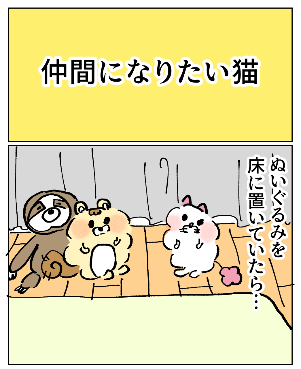 仲間になりたい猫 2024年01月10日 🔵1つ前の話はこちら🔵 次の話は下に↓↓↓🌈次の話はコチラ🌈 🐱初めから読む🐱↓猫漫画の 一覧はこちらから↓こちらの登録もお願いします🥹猫漫画の更新は、月~金曜日12時~13時更新を目指してますが、時間が前後してしまうので💦登録すると更新のお知らせが届いて便利✨アプリでのフォローをお願いします。LINEでの更新通知は終了となり、アプリでの更新になります!なので、面倒だとは思いますが…アプリでの通知登録をお願いいたします🥺🙇♀️◯フォローまでの手順1.下のバナーをクリック↓2.アプリストアにて「ライブドアアプリ」をダウンロード↓3.アプリの虫眼鏡ボタンからブログ名を検索もしくはバナーをクリック↓4.アプリ内でブログが表示されたら右上の「フォローする」をクリック↓5.通知が届く、フォロー一覧にブログが表示 「猫のチャコちゃん」カテゴリの最新記事 タグ :#イラストレーター#エッセイマンガ#猫漫画#猫日記#猫イラスト#猫漫画エッセイ#猫マンガ#猫ブログ#猫絵日記#猫のいる生活 < 前の記事次の記事 > コメント コメント一覧 (1) 1. 通りすがり 2024年01月10日 12:35 うちは絶対にこれやらなかった。 ワンコ三匹だったんですが、三匹揃って集合写真すら撮らせてくれなかったの^^; でも、仲は良かったです! 0 makarina がしました コメントフォーム 名前 コメント 記事の評価 リセット リセット 顔 星 情報を記憶 コメントを投稿する