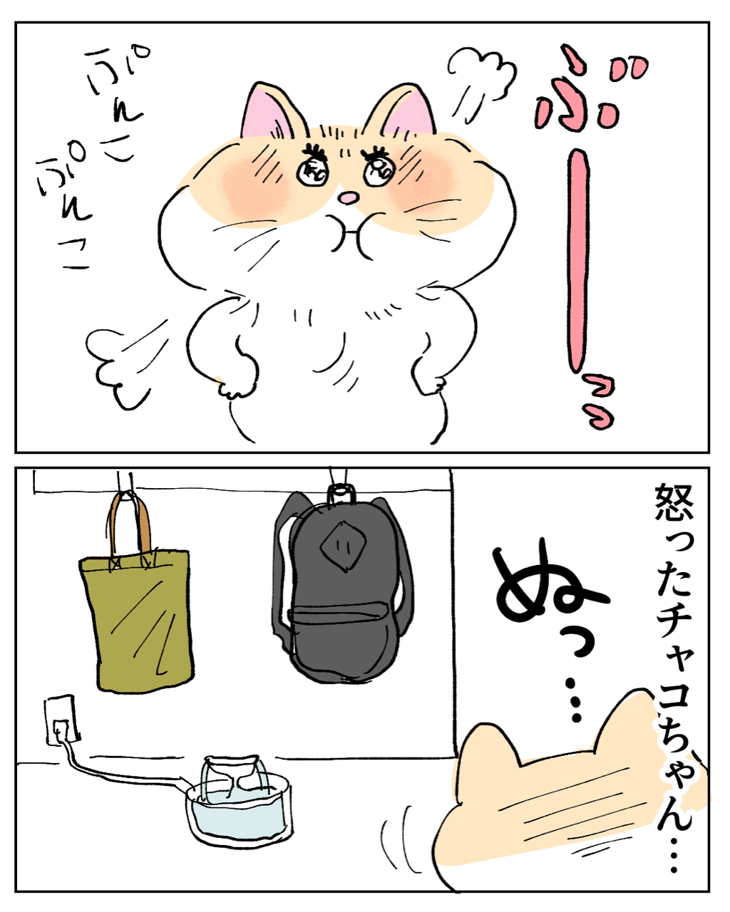 猫の仕返し 2024年01月18日 🔵1つ前の話はコチラ🔵 次の話は下に↓↓↓🌈次の話はコチラ🌈 🐱初めから読む🐱↓猫漫画の 一覧はこちらから↓こちらの登録もお願いします🥹猫漫画の更新は、月~金曜日12時~13時更新を目指してますが、時間が前後してしまうので💦登録すると更新のお知らせが届いて便利✨アプリでのフォローをお願いします。LINEでの更新通知は終了となり、アプリでの更新になります!なので、面倒だとは思いますが…アプリでの通知登録をお願いいたします🥺🙇♀️◯フォローまでの手順1.下のバナーをクリック↓2.アプリストアにて「ライブドアアプリ」をダウンロード↓3.アプリの虫眼鏡ボタンからブログ名を検索もしくはバナーをクリック↓4.アプリ内でブログが表示されたら右上の「フォローする」をクリック↓5.通知が届く、フォロー一覧にブログが表示 「猫のチャコちゃん」カテゴリの最新記事 タグ :#エッセイ漫画#漫画が読める#漫画#コミックエッセイ#ギャグ漫画#猫漫画#猫#猫かわいい#猫マンガ#猫ブログ < 前の記事次の記事 > コメント コメント一覧 (3) 1. みる 2024年01月18日 15:51 賢いと言うか器用な猫ちゃんですね 凄い 0 makarina がしました 2. 通りすがり 2024年01月18日 19:54 ケケケの顔w 私、たぶんチャコちゃんと気が合うw 0 makarina がしました 3. ふう 2024年01月18日 20:47 猫って頭いいと思わされることが多々ある😃 0 makarina がしました コメントフォーム 名前 コメント 記事の評価 リセット リセット 顔 星 情報を記憶 コメントを投稿する