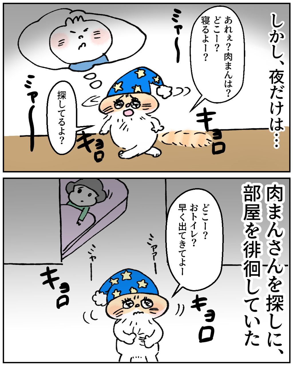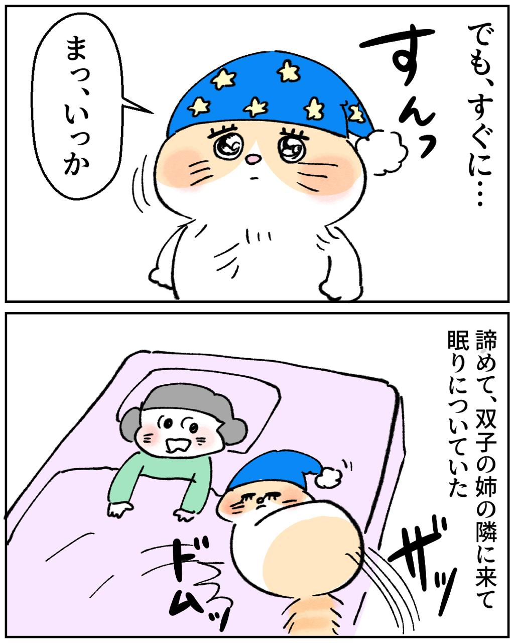 チャコちゃんの3泊4日のお留守番③ 2024年05月09日 🔵1つ前の話はこちら🔵 つづきは下に↓↓↓🌈続きはこちら🌈🐱初めから読む🐱↓猫漫画の 一覧はこちらから↓こちらの登録もお願いします🥹猫漫画の更新は、月~金曜日12時~13時更新を目指してますが、時間が前後してしまうので💦登録すると更新のお知らせが届いて便利✨アプリでのフォローをお願いします。LINEでの更新通知は終了となり、アプリでの更新になります!なので、面倒だとは思いますが…アプリでの通知登録をお願いいたします🥺🙇♀️◯フォローまでの手順1.下のバナーをクリック↓2.アプリストアにて「ライブドアアプリ」をダウンロード↓3.アプリの虫眼鏡ボタンからブログ名を検索もしくはバナーをクリック↓4.アプリ内でブログが表示されたら右上の「フォローする」をクリック↓5.通知が届く、フォロー一覧にブログが表示 「猫のチャコちゃん」カテゴリの最新記事 タグ :#漫画が読める#コミックエッセイ#漫画無料#猫漫画#猫イラスト#猫マンガ#猫ブログ#猫エッセイ漫画#ねこ漫画#猫が好き < 前の記事次の記事 > コメント コメント一覧 (1) 1. 通りすがり 2024年05月09日 19:31 いや、チャコちゃん、絶対に気付いていると思う!w お姉様の、ときめき分かります^^ 私も初めてワンコと同じ布団で寝た時、本当に幸せを感じましたもん^^ 0 makarina がしました コメントフォーム 名前 コメント 記事の評価 リセット リセット 顔 星 情報を記憶 コメントを投稿する