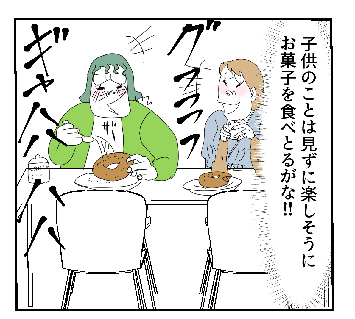まーた砂糖かけてるよ、しかもドーナツにw