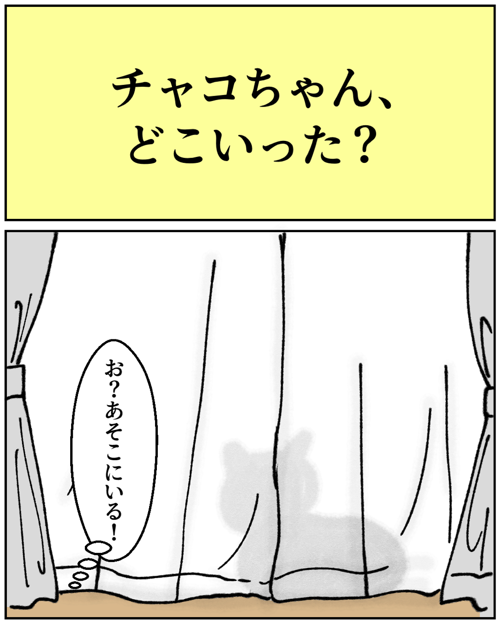 チャコちゃん、どこいった? 2024年06月26日 🔵ひとつ前の話はこちら🔵 次の話は下に↓↓↓🌈次の話はこちら🌈 🐱初めから読む🐱↓猫漫画の 一覧はこちらから↓こちらの登録もお願いします🥹猫漫画の更新は、月~金曜日12時~13時更新を目指してますが、時間が前後してしまうので💦登録すると更新のお知らせが届いて便利✨アプリでのフォローをお願いします。◯フォローまでの手順1.下のバナーをクリック↓2.アプリストアにて「ライブドアアプリ」をダウンロード↓3.アプリの虫眼鏡ボタンからブログ名を検索もしくはバナーをクリック↓4.アプリ内でブログが表示されたら右上の「フォローする」をクリック↓5.通知が届く、フォロー一覧にブログが表示 「猫のチャコちゃん」カテゴリの最新記事 タグ :#エッセイマンガ#漫画無料#コミックエッセイマンガ#猫漫画#猫日記#猫イラスト#猫漫画エッセイ#猫マンガ#猫ブログ#猫エッセイ漫画 < 前の記事次の記事 > コメント コメントフォーム 名前 コメント 記事の評価 リセット リセット 顔 星 情報を記憶 コメントを投稿する