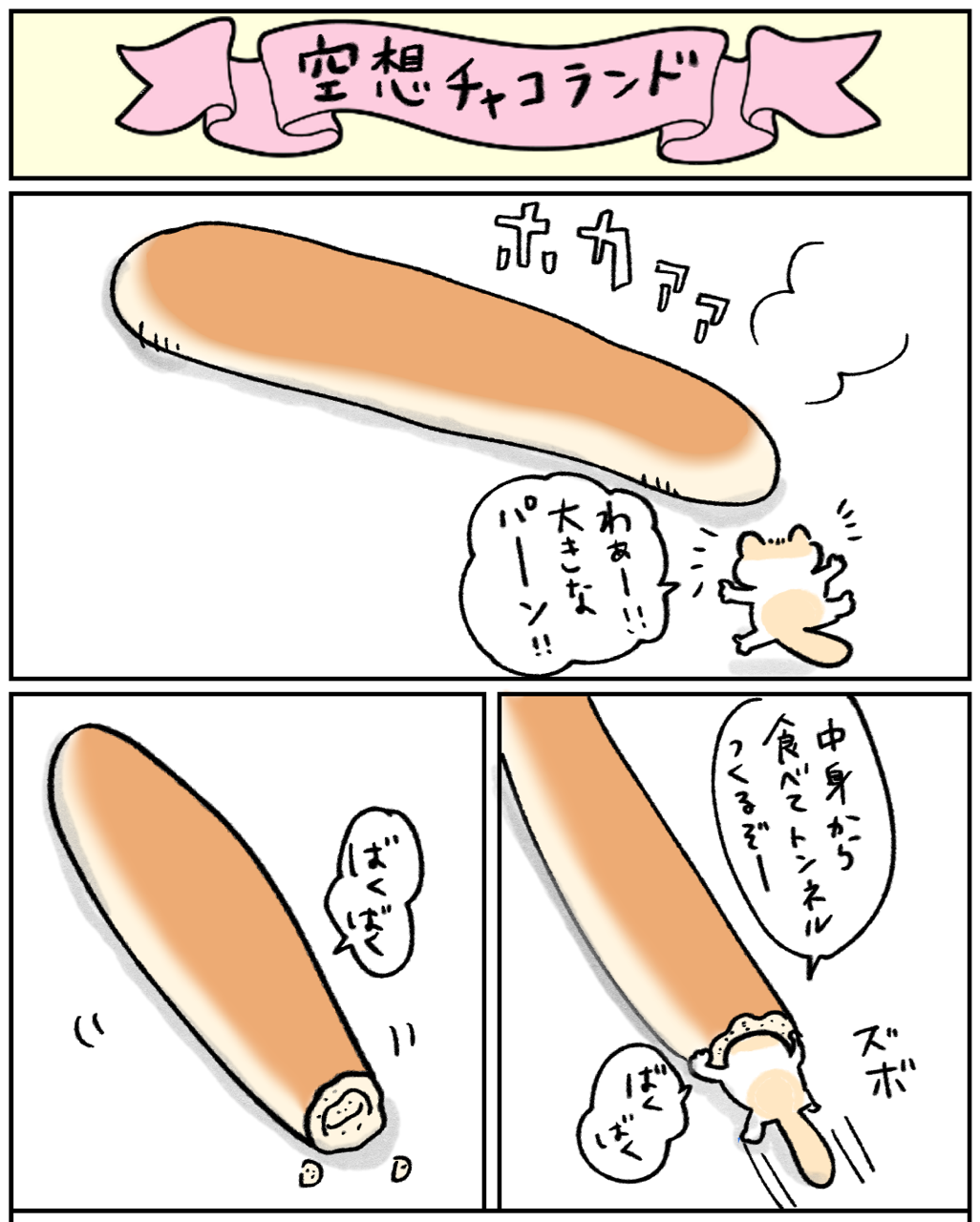 パンのトンネル作り 2025年01月31日 🔵前の話🔵 次の話は下に↓↓🌈次の話はこちら🌈 ↓初めから読むならこちら↓↓猫漫画の 一覧はこちらから↓Kindleでまとめ読み出来るようになりました✨1.2巻あります! 「空想チャコランド」カテゴリの最新記事 タグ :#コミックエッセイ#エッセイコミック#漫画が読める#猫漫画#空想漫画#猫のいる家#猫マンガ#猫イラスト#猫ブログ#猫コミックエッセイ < 前の記事次の記事 > コメント コメント一覧 (1) 1. オバミン 2025年01月31日 23:39 😸トンネル完成したら、チョコクリーム詰めてもらうんだ! 0 makarina がしました コメントフォーム 名前 コメント 記事の評価 リセット リセット 顔 星 情報を記憶 コメントを投稿する