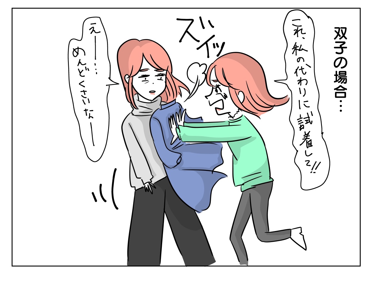双子、服を買う 2021年07月22日 「双子話」カテゴリの最新記事 タグ :#アラサー婚活#アラサー#フォロワー#イラストエッセイ#恋愛漫画#恋愛#婚活漫画#コミックエッセイ#婚活#双子 < 前の記事次の記事 > コメント コメント一覧 (4) 1. ボビーパパ 2021年07月22日 20:08 なるほど、便利ですネ。 0 makarina がしました 2. うにまる 2021年07月31日 09:50 初めてコメントさせていただきます‼︎ 私も一卵性双生児…わかります‼︎笑 というか、おんなじ人いて感動のレベル‼︎笑 これからも応援してます😂 0 makarina がしました 3. ☆まかりな☆ 2021年07月31日 17:16 >>2 双子さんなんですね✨ 双子あるある共感できると嬉しいですよね🥰 0 makarina がしました 4. 母の方 2021年08月01日 23:09 なるほど一卵性双生児ならではですね。 ウチは男女なのですが、「双子」に引き寄せられてやって来ました。 0 makarina がしました コメントフォーム 名前 コメント 記事の評価 リセット リセット 顔 星 情報を記憶 コメントを投稿する